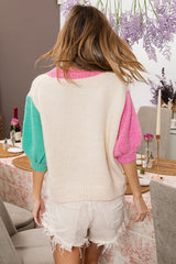 Color Block Puff Sleeve Top Oat/Pink/Jade