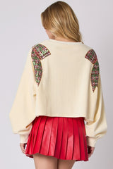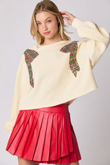 Corduroy Christmas Bow Sequin Sweater Cream