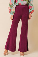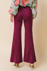 Faux Suede Flare Bottom Zipper Pants Magenta