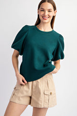 Textured Puff Sleeve Blouse Top Hunter Green