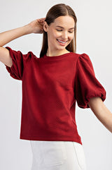 Textured Puff Sleeve Blouse Top Wine