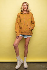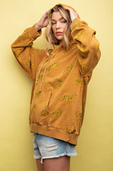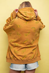 Tiger Print Mineral Washed Hoodie Top Camel