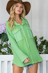 Vintage Wash Waffle Knit Shacket Green