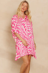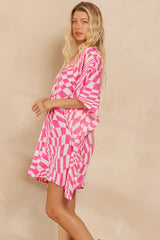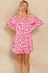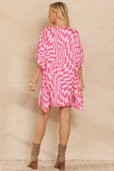 Woven Print Shift Dress Pink