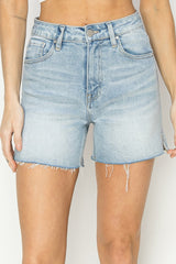High Rise Raw Cut Hem Side Slit Shorts Light