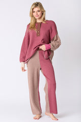 Multi Color Stripe Loungewear Pants Berry/Brown