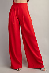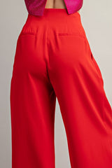 Solid Pleated Pants Red