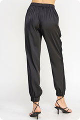 Tuxedo Lace Detail Satin Jogger Pants Black