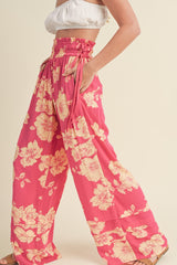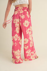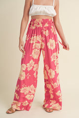 Wide Leg Floral Print Pants Magenta Peach