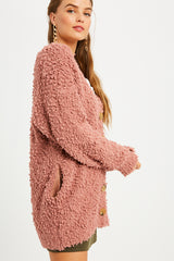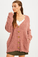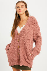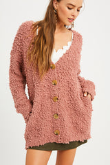 Fluffy popcorn textured knit button down knit cardigan sweater. Fluffy soft popcorn textured yarn. Button down on center front