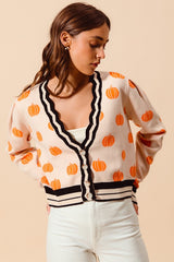 Pumpkin Pattern Knitted Cardigan Oatmeal/Orange