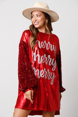 Christmas 'Merry' Sequin Foil Mini Dress Red