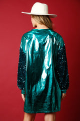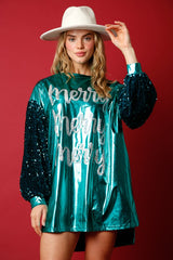 Christmas 'Merry' Sequin Foil Mini Dress Turquoise