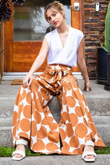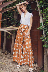 Dot Pattern Waist Tie Palazzo Pants Toffee