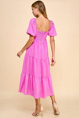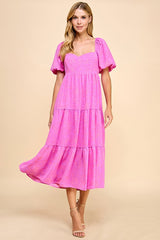 Abstract Printed Bubble Sleeves Midi Dress Lilac