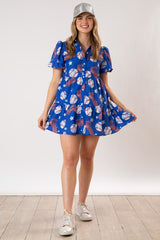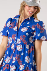 Baseball All Over Print Mini Dress Blue