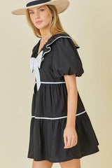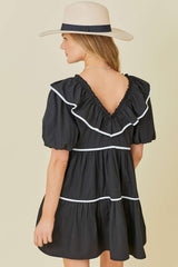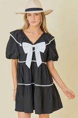 Bow Ruffle Contrast Mini Dress Black