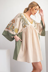 Embroidered Linen Dress Khaki Olive