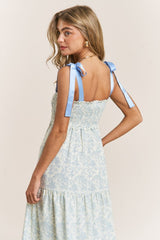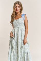 Empire Neck Line Tiered Maxi Dress Floral Blue