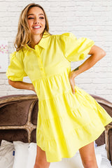 Puff Sleeve Tiered Dress Lemon
