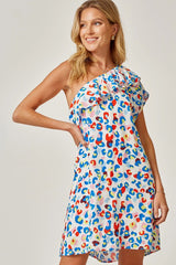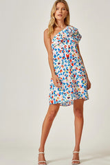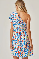 One Shoulder Shift Dress Royal Multi