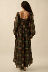 Patchwork Smocked Bubble Sleeve Dress Pine