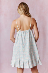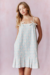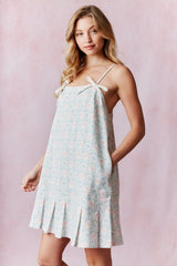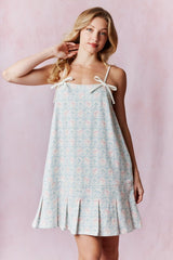 Printed Sleeveless Bow Mini Dress Lt Blue/Pink