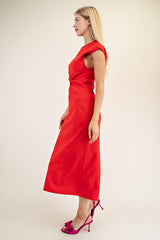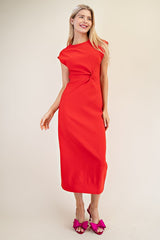 Round-Neck Midi Dress Red