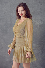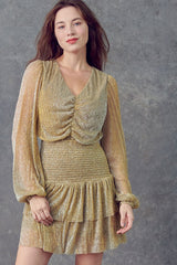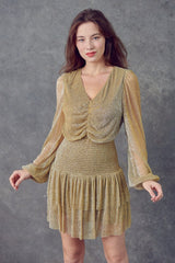 Ruched Metallic Mini Dress Gold
