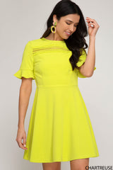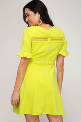 Ruffle Sleeve Heavy Knit Dress Chartreuse