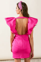 Ruffle Sleeve Tulip Skirt Scuba Dress Fuchsia