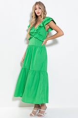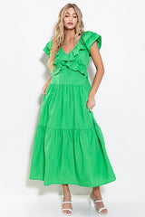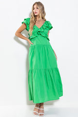 Ruffle Tiered Back Tie Maxi Dress Green