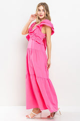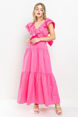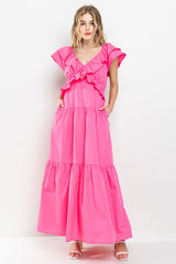 Ruffle Tiered Back Tie Maxi Dress Pink