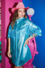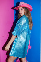 Shiny Foil Sequin Fringe Dress Sky Blue