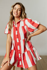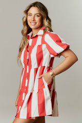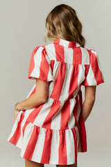 Stripe Print Tiered Mini Dress Red