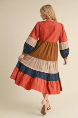 Striped Tiered Layer Midi Dress Brick