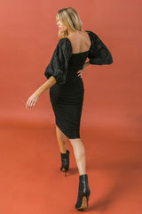 Sweater Square Neck Mini Dress Black