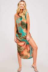 Tie Dye Sleeveless Maxi Dress Turquoise