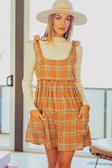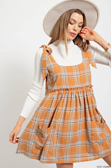 Washed Cotton Baby Doll Tiered Dress Rust Combo