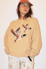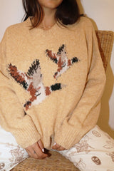 Flying Mallard Duck Knit Sweater Yellow