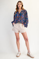 Printed Rayon Gauze Blouse Top Indigo