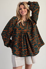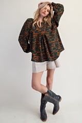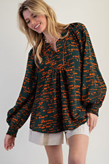 Printed Sophia Woven Top Jungle Green