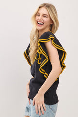 Ruffle Sleeve Game Day Knit Top Black/Gold