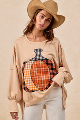 Plaid Pumpkin Patchwork Sweatshirt Top Oatmeal