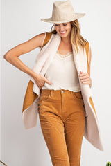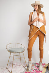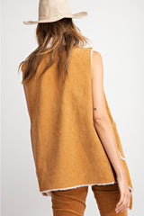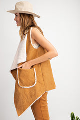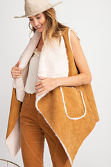 Corduroy Suede-Like Vest Lined Ultra Soft Faux Rabbit Fur. Open Front & Sleeveless
