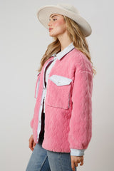 Front Pocket Denim Contrast Jacket Pink/Denim