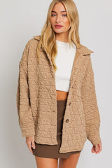 Quilted Fleece Shacket Taupe
