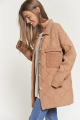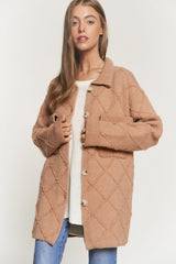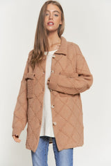 Rhombus Textured Soft Knit Cardigan Jacket Latte