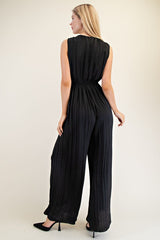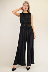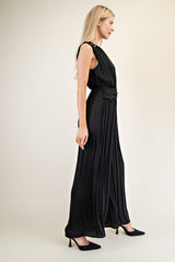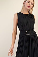 Buckle Satin Pleated Jumpsuit Black