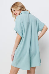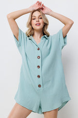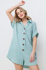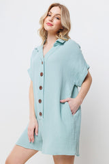 Collared Roll-Up Sleeve Gauze Romper Mint